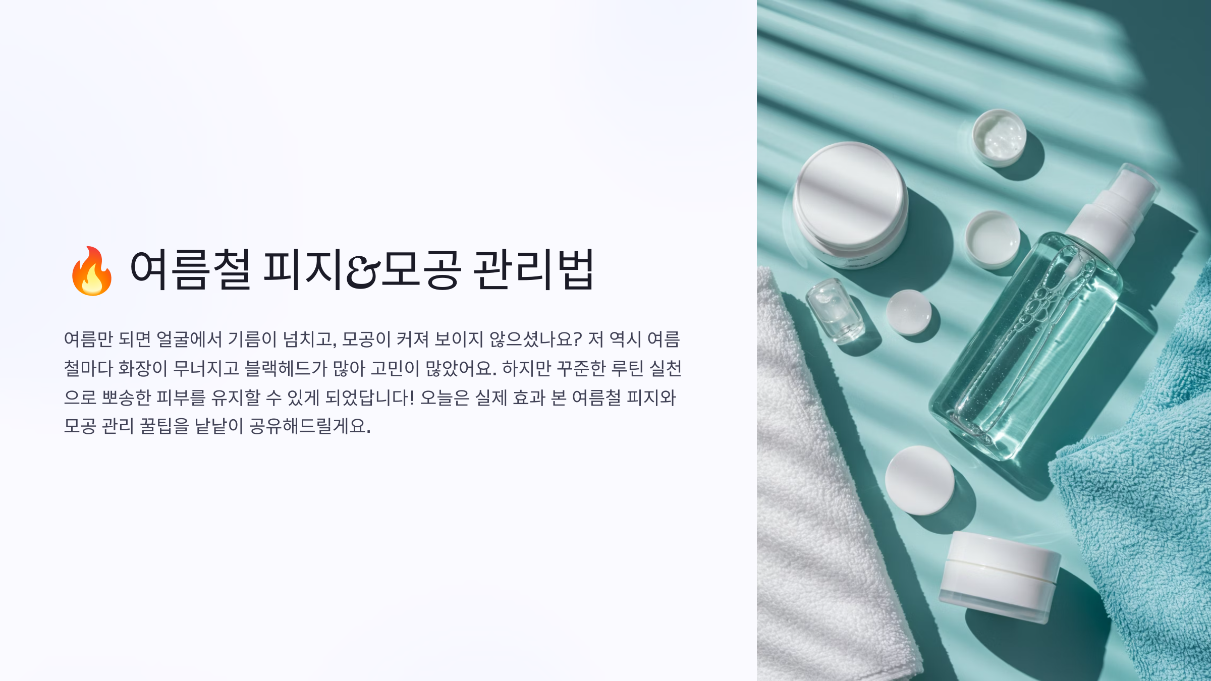 💇♀️ 여름철 헤어 & 두피 관리법두피도 피부입니다! 여름엔 머릿결보다 두피가 먼저예요!여름철이 되면 얼굴도 피지 폭발이지만, 두피는 더하죠. 햇볕에 달궈진 두피, 땀과 피지가 뒤엉킨 모공, 게다가 냄새까지… 저도 한때 여름이면 매일 모자나 드라이샴푸로 대충 넘기곤 했는데, 두피 상태가 점점 나빠지더라고요. 오늘은 그런 저의 실수에서 배운 여름철 헤어 & 두피 관리 꿀팁을 생생하게 알려드릴게요!📋 목차여름철 두피가 받는 스트레스두피 세정과 샴푸 선택법두피 쿨링과 열감 케어탈모 예방을 위한 영양 관리머릿결 손상 방지 팁여름철 스타일링 시 주의사항실천 가능한 헤어&두피 루틴 정리 1. 여름철 두피가 받는 스트레스햇볕이 정수리에 내리쬐면 두피는 40도 이상 올라가고, 모공은 확 열리며 피지를 과도하게 분..