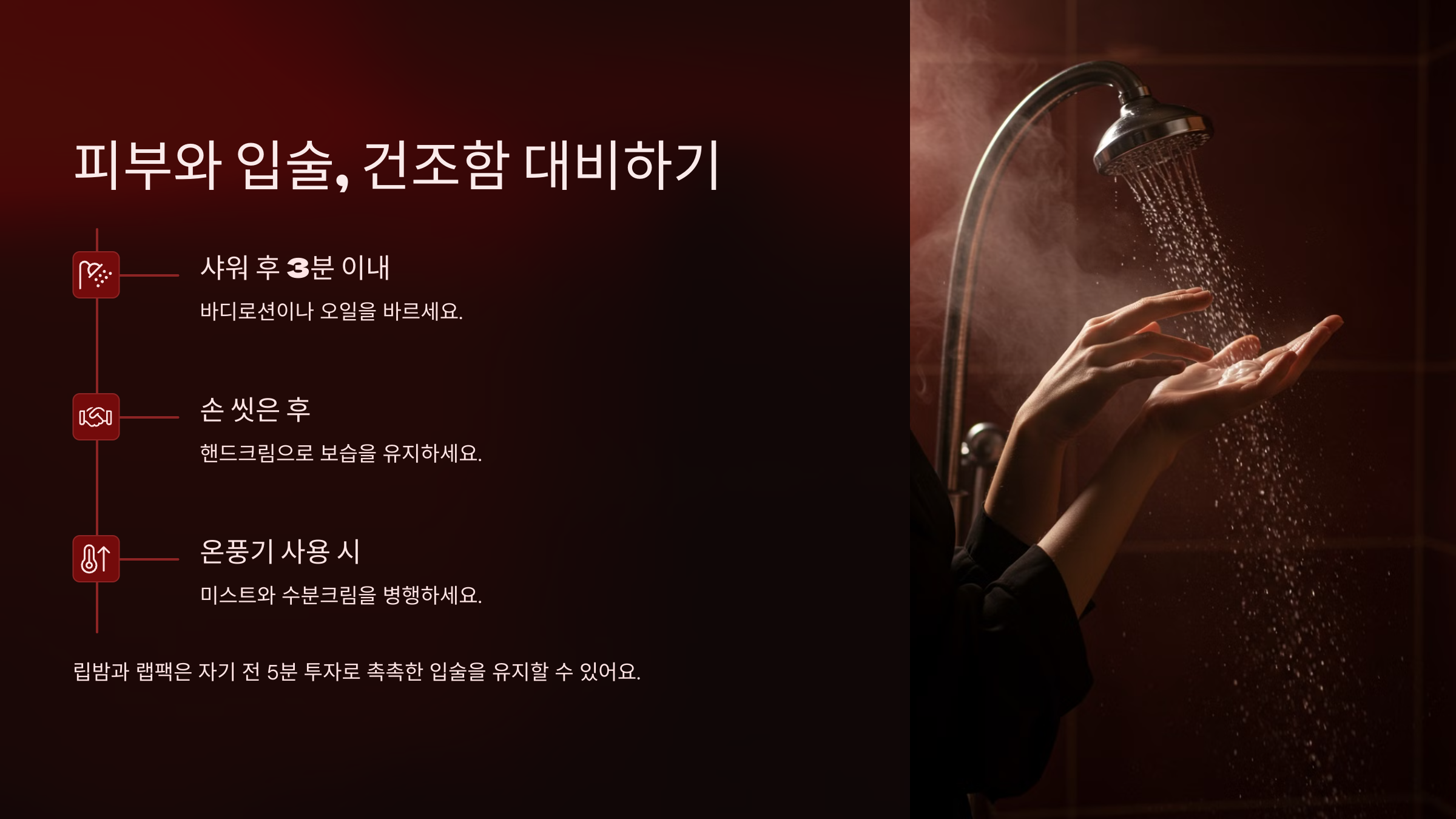 - 온풍기 사용 시 미스트 + 수분크림 병행